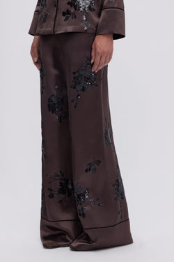 PANTALONI A PIGIAMA IN RASO CON FIORI DI PAILLETTES